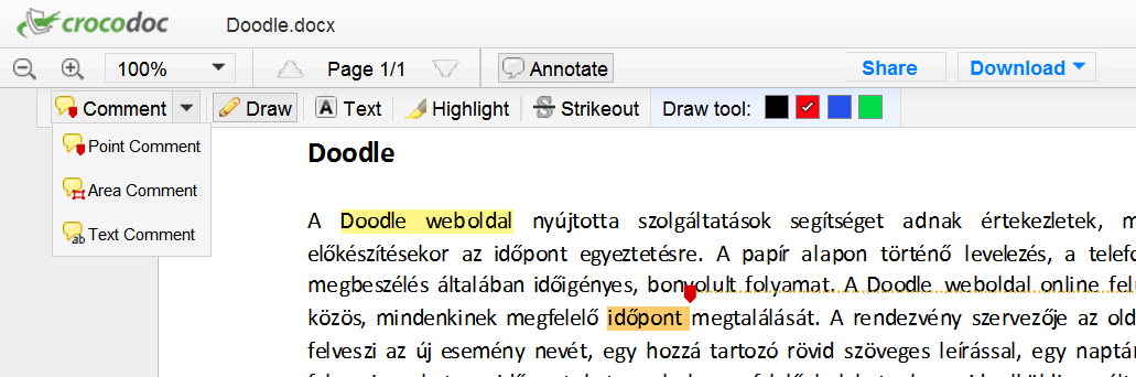 Fájlmegosztás, közös jegyzetek – crocodoc.com