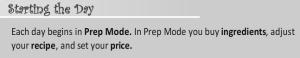 Minden nap az előkészítéssel kezdődik. Hozzávalókat kell vásárolnod, össze kell állítanod a receptet, és meg kell adnod az árat.