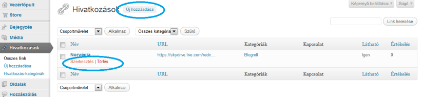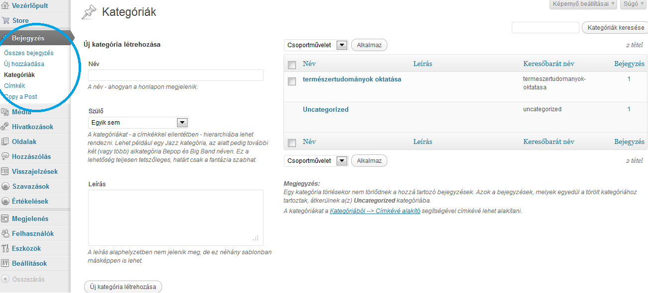 A címkéket és a kategóriákat egyaránt megtekinthetjük és szerkeszthetjük a bal oldali vezérlő menüből is.