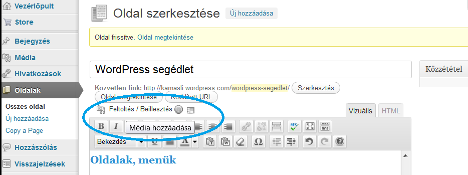 A feltöltött, képek, videók a webhely médiatárába is bekerülnek, melyeket később más helyen is felhasználhatunk. Ha a médiatárból olyan elemet törlünk, amely egy bejegyzés vagy oldal része, akkor az ott sem fog megjelenni.